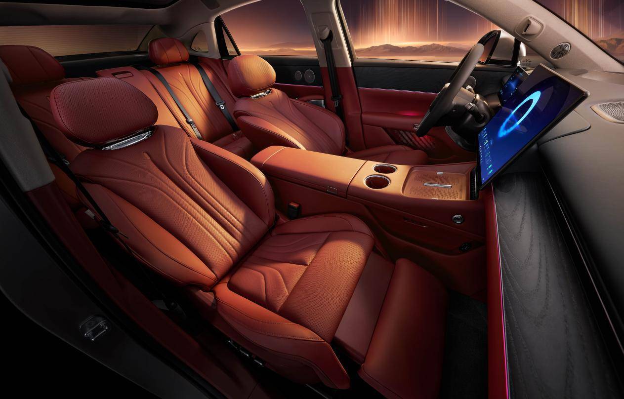 内饰以“山海同光”为设计核心,将东方美学与实用豪华深度融合。Nappa真皮座椅、真木饰板与亲肤环保面料的三重搭配,触感温润细腻,全车座椅标配加热、通风与10点式按摩功能,副驾零重力座椅与后排可选装豪华配置,配合6.6L冷暖车载冰箱,构建全场景舒适座舱。智能交互层面,16.1英寸3K悬浮中控屏与39英寸AR-HUD形成双屏联动,搭载鸿蒙座舱5.1系统,语音响应速度快至0.5秒,生态应用覆盖导航、娱乐、办公全场景,无缝流转的操作体验媲美高端智能手机。